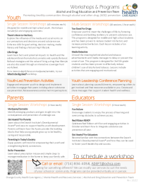 | Virtual and In-PersonThe workshops and programs vary by topic, length of time per session and session frequency. See attached flyer for more information and/or contact us directly at ADEPT@ochca.com. |
